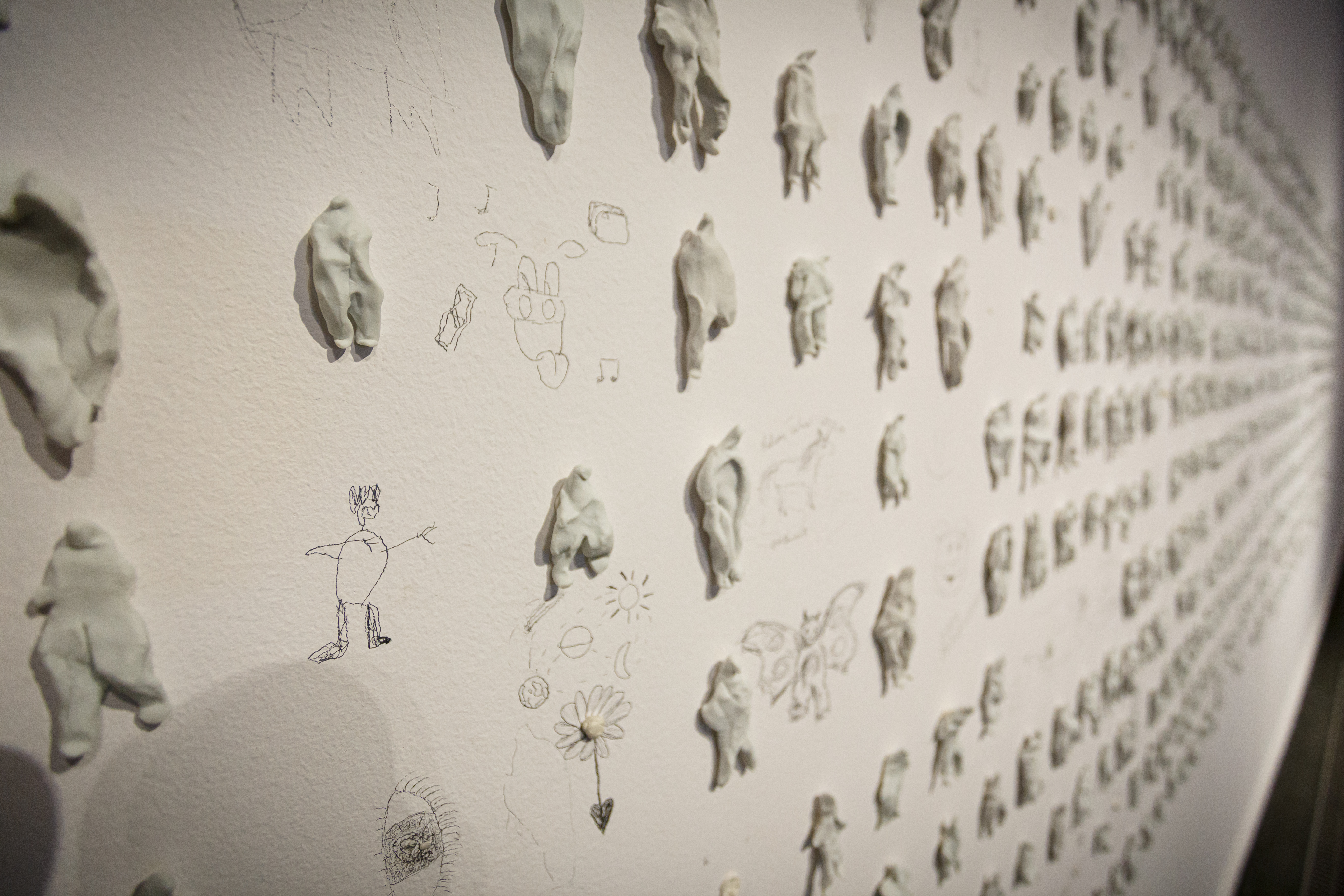 How is the child's personality shaped? How will childhood experiences affect his future? How will adult decisions and behaviors affect the child? How to make the future adult self-confident, trust others, feel rooted? The author of the work asks herself and us. Made of exceptionally noble Limoges porcelain and Parian, she handcrafted 1000 tiny figures representing the forming figures. The emerging figures can be seen more clearly. Every movement of the fingers left a permanent mark on them, which determined their character, but the final shape remains undefined. Delicate and fragile people are waiting to be taken care of. You can take the figurine with you, but leave your mark on the empty place on the wall with a pencil.